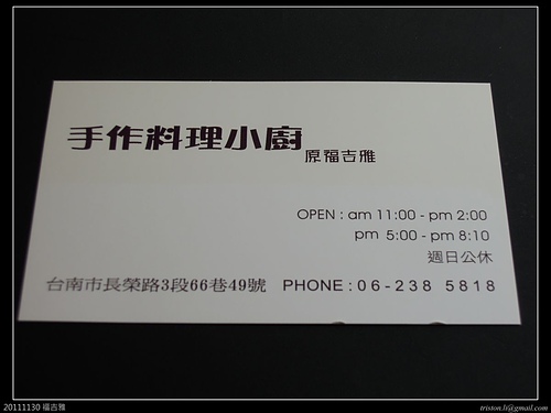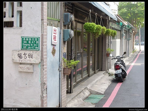 從林森路轉進長榮路三段66巷,原本想說應該就是這一間了,可是一直找不到招牌,來回走了好幾趟,終於在屋旁看到"福吉雅"的看板。有掛六棵嬰兒眼淚的就是囉!