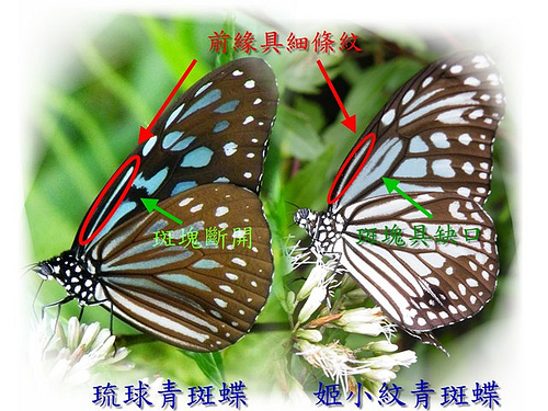 琉球青斑蝶和姬小紋青斑蝶的差別