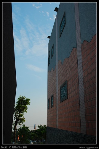 傾斜的外型很容易讓人聯想到當年渡過台灣海峽的帆船乘風破浪的模樣,另外,由其外型的紅色立柱,也可以聯想為平埔族竹竿柱子的房屋,平埔和漢人由原本的接觸,相互衝突,融合,中國式的紋窗逐漸和平埔族建屋合而為一,象徵文化的融合....