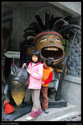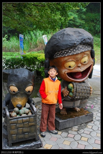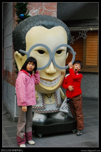 信義鄉農會真的把當地的農產品做了極大的發揮,除了開發出好多種伴手禮外,戶外的園區也擺設了不少可愛的大公仔,不用我們發話,小朋友自己就擺好pose了.