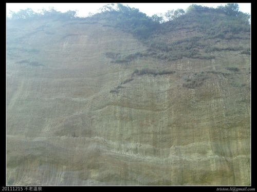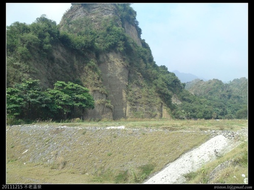 荖濃溪由上游向不老溫泉方向沖刷,在對岸形成沖積扇,在這邊形成側蝕,長久以往,不來溫泉還是會引發相當程度的崩塌。