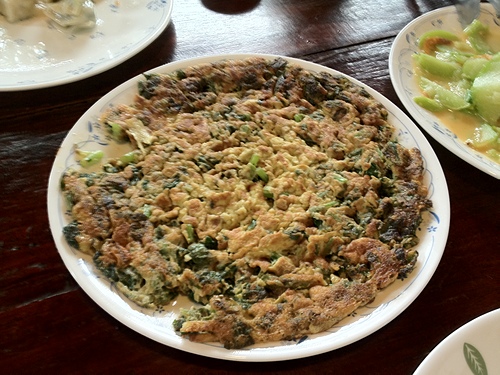 山茼蒿煎蛋,一樣的菜色,點二盤...山茼蒿的獨特口味,不見得每個人都合口味,不過我們這群人是沒有挑食這種問題的啦..