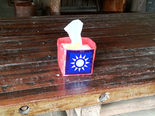 點完了咖啡(只有要不要,沒有口味的,而且是另點),上廁所的途中,發現了樹林中掛了一掛紅布,看來這裡也是名揚海外哦!