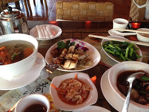 今天點了二人合菜,把蝦仁換了油淋無骨雞!一道炒芥藍,豬肚酸菜湯,紅燒豬腳,水果加甜點!