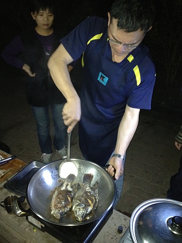 露營嘛!不外就是吃喝玩樂,今天的晚餐擔當是剛晉陞的阿德師,原本是"阿德",後來掛階"阿德老闆",今天正式晉陞為"阿德師"。