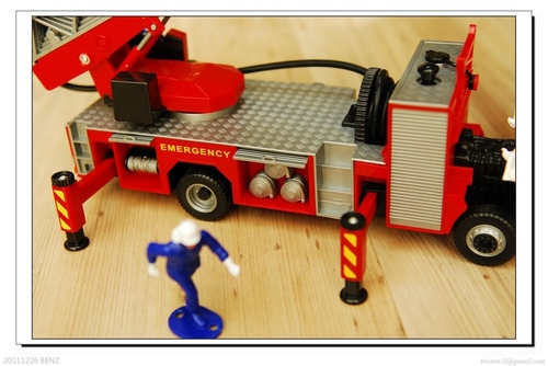 它的雲梯升起來,按照比例,應該可以升到八層樓高度。