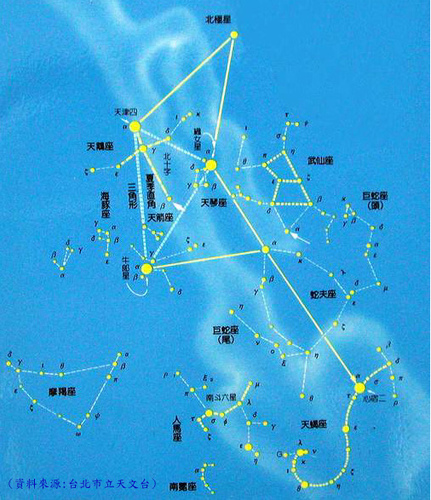 不知為何,原本都以為太陽系行星公轉軌道的黃道面和銀河系圓盤是呈大致平行的角度,上週在仔細看夏季星座圖時,突然想到以前在山上看到銀河時,好像都呈由北向南的直向角度,可是如果太陽系行星公轉軌道的黃道面和銀河系圓盤(黃道面和銀道面)大致呈平行的話,這樣應該不分四季,銀河應該大致也和地平面呈平行的東西向羅列在天空才對吧?但實際上卻如非如此......