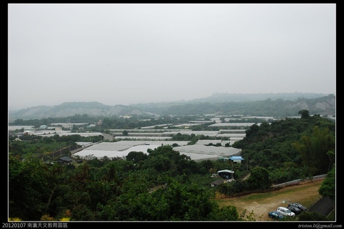 今天霧靄很重,視野還好而好,不過可以看到曾文溪曲流北向,近處的網室大多種植木瓜