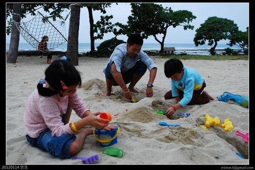 因為去年5月才和爸媽來過一次,上次的感覺很不錯,因此又安排了這一次,小朋友最愛在悠活渡假村的沙坑中玩沙,其實最近台灣很多海灘都掀起了抗議財團圈地蓋渡假中心的活動,有時候在悠活的沙灘玩耍,都會有種助紂為虐的罪惡感啦!