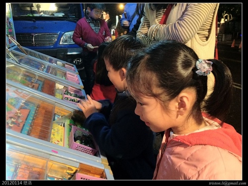 墾丁大街應該是到墾丁必去的景點之一,早上雖然天氣不錯,但是下午下了點雨,所以街上的人潮不多,大概都在看開票的結果吧!我們也不太買東西了,倒是兒子女兒對夜市的遊戲很感興趣,和二哥玩了空氣槍和彈珠才罷休。
