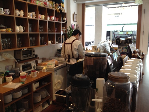 老闆和老闆娘看起來都是"好人",引用朋友的話,店面雖然不小,但沒有擺很多位子,可是聽隔桌客人和老闆交談的口氣,再加上架上擺放的熟客杯具,這裡的客人亦非"白丁"........