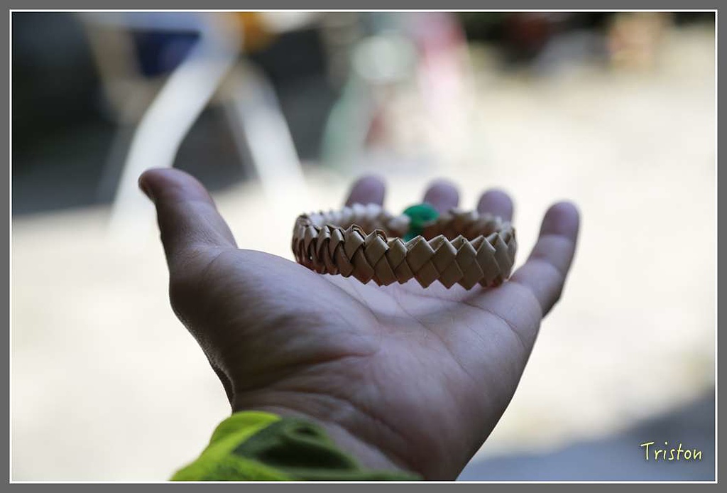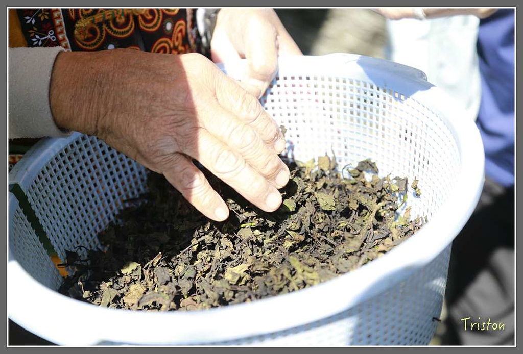 在進入編月桃葉的耆老家前,先提供了用這種茶葉泡的茶水消渴,忘了它叫什麼葉子,喝下去的水有股淡淡的甜味