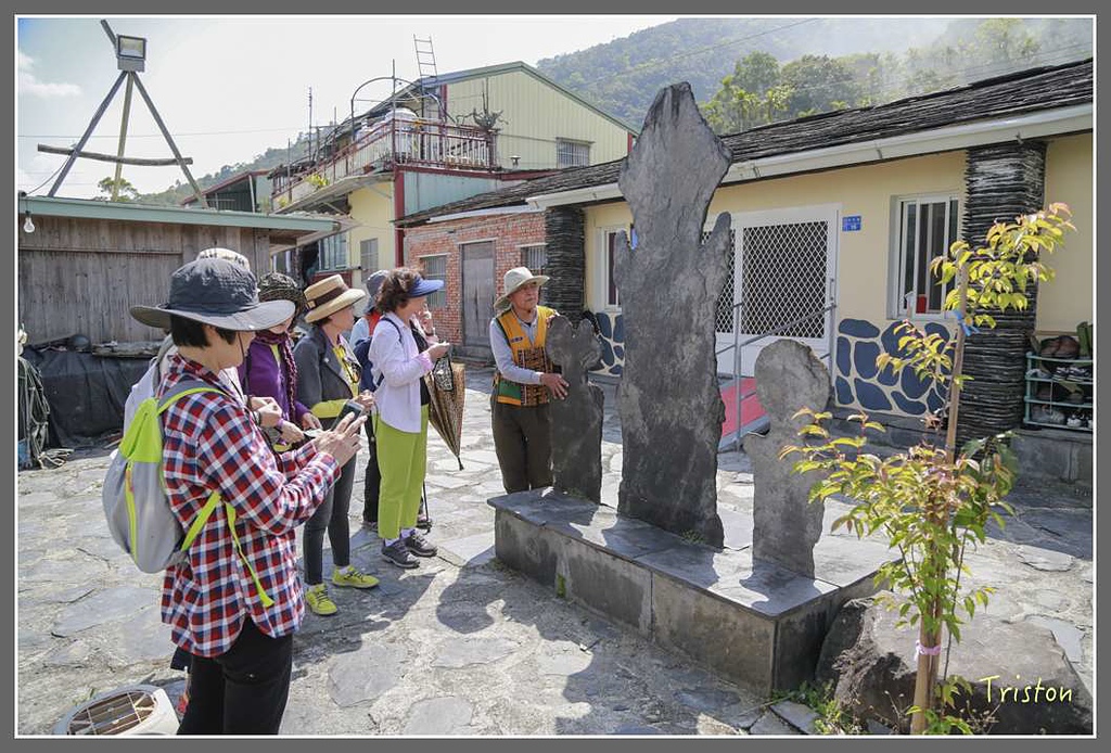 在頭目家屋的庭前,有疊石而成的石台,台上立有頭目標石,頭目標石以石板雕鑿成人形,是頭份身份地位的象徵