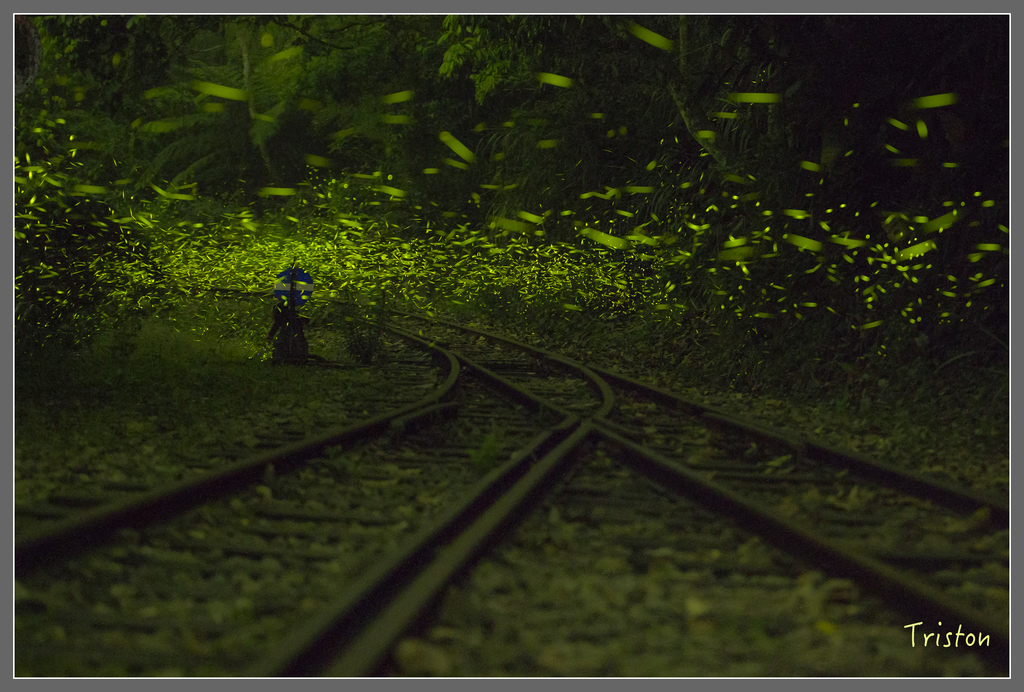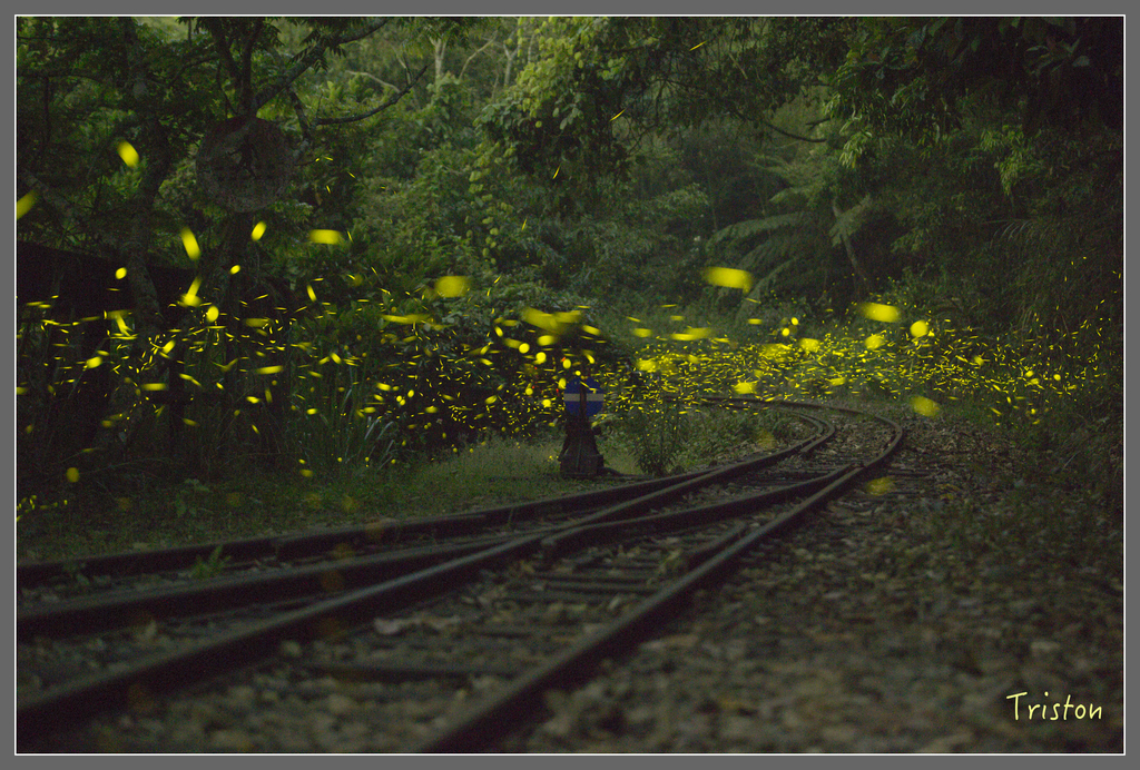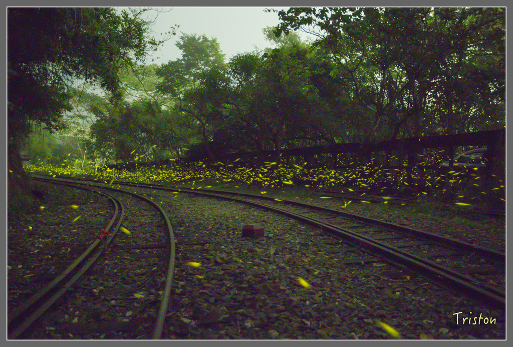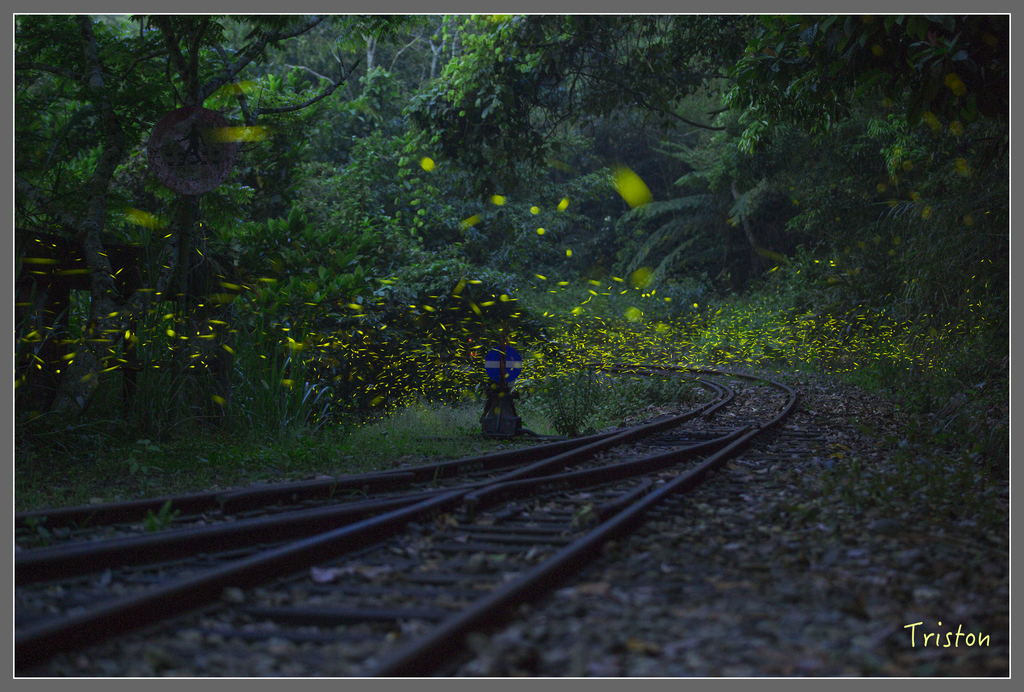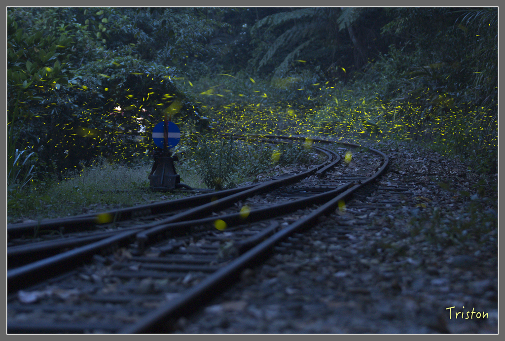 20180411梨園寮車站拍攝,下行15號隧道口人滿為患,先布景在上行轉轍器附近...先以70-200mm F2.8鏡頭手動對焦,至1830,天色全暗,螢火蟲漸漸出現