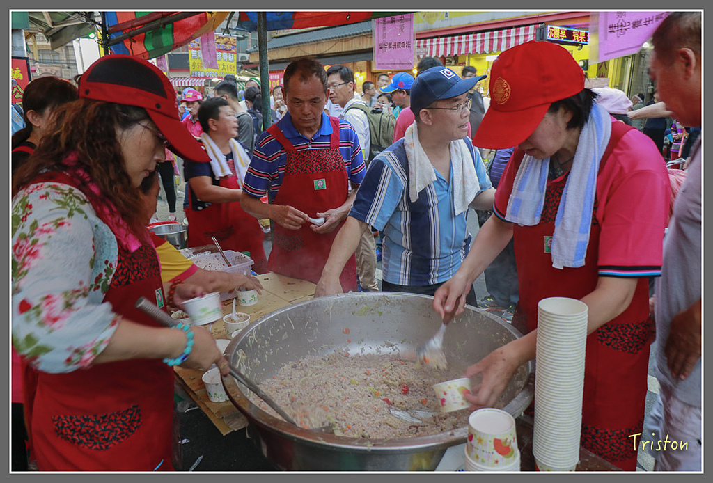 相關人員忙的樂乎,人潮不斷,我們被半推半擠的再度擠出廟裡,這樣走來走去,還真的有點累了,決定先去吃東西...