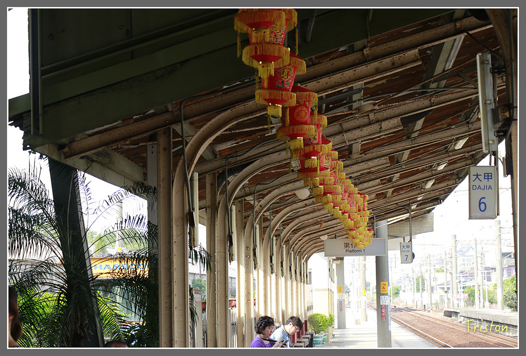 到了大甲車站三點四十分,平常幾乎可以躺著坐的區間車廂罕見的座無虛席,大部份乘客都是為了遶境而來,在大甲站下車了。出了車站,大甲車站月台也掛上了媽祖遶境的宮燈,加上車站外滿滿的人潮,氣氛愈來愈濃厚
