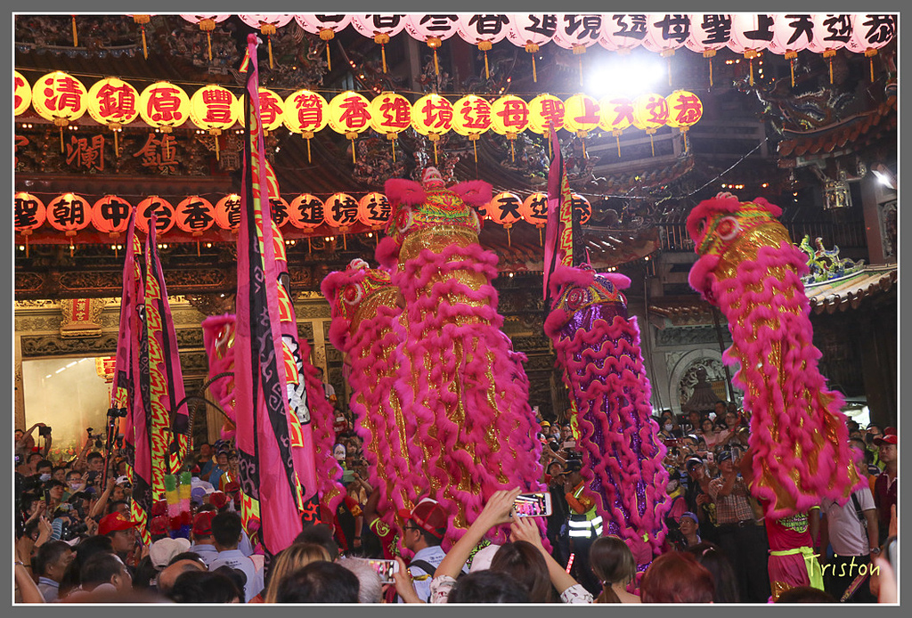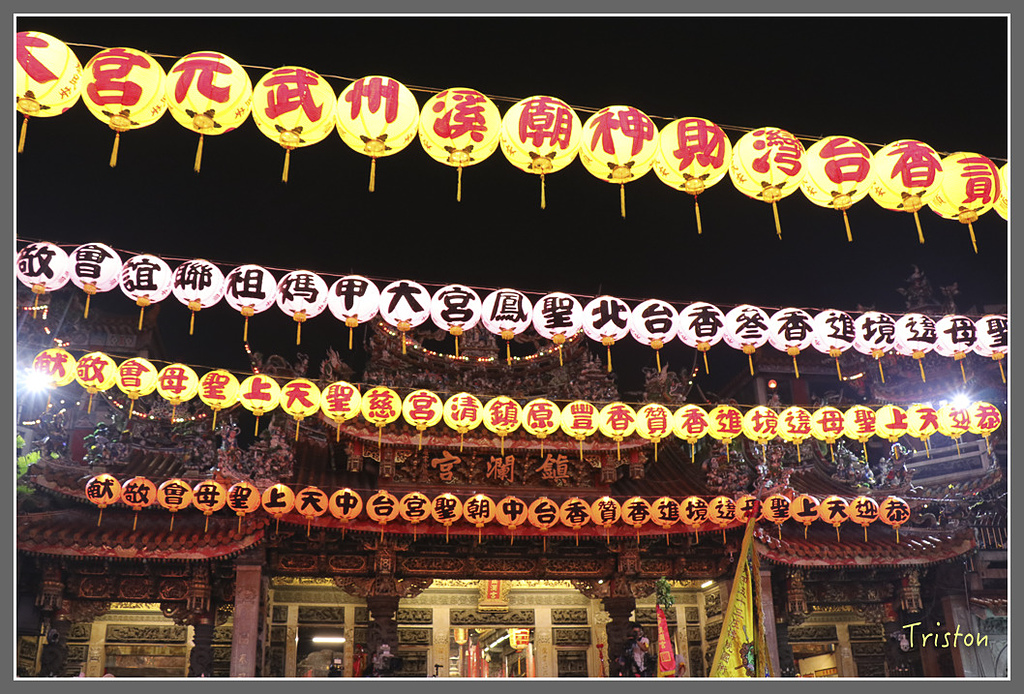 每年元宵節的下午六點在鎮瀾宮大殿擲杯請示媽祖,決定該年起駕日期時刻。期程九天八夜的文化宗教盛會,接力造訪一百一十間宮廟,來回綿延三百三十公里。這麼大的活動背後當然也有很大的政治、商業和宗教利益。在1988年前,大甲媽遶境時都駐駕在北港朝天宮,不過朝天宮廟方打出「大甲媽回娘家」的名號,引發鎮瀾宮廟方不滿,認為大甲媽是從大陸湄州迎來的,並非是北港朝天宮的分靈,雙方鬧得不可開交,鎮瀾宮廟方一氣之下,改到隔一條溪的新港奉天宮駐駕。至於嘉義新港奉天宮和雲林北港朝天宮爭正統的恩怨情仇,又是另一段故事,只不過,神明不語,若有靈,應該在乎的也是萬民,而非正統吧!