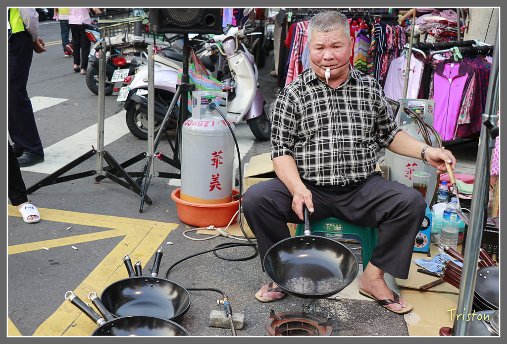 這位阿伯現場賣鑄鐵鍋,會講會賣,看起來真的很厲害!如果不是晚上還要徒步走好長一段路,幾乎都要掏出錢包了