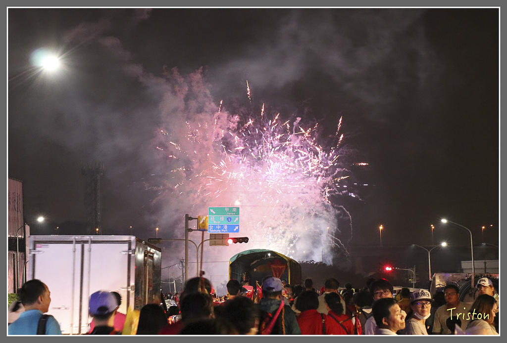 由大甲市區走到大甲橋,突然間下了毛毛雨,據說這是大甲媽遶境的"例行公事",歷年如此,下陣小雨清涼不少。過了好長的大甲橋,橋上許多攝影人士在等晚點的高空煙火,過橋後進入清水的甲南社區