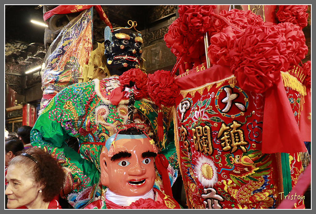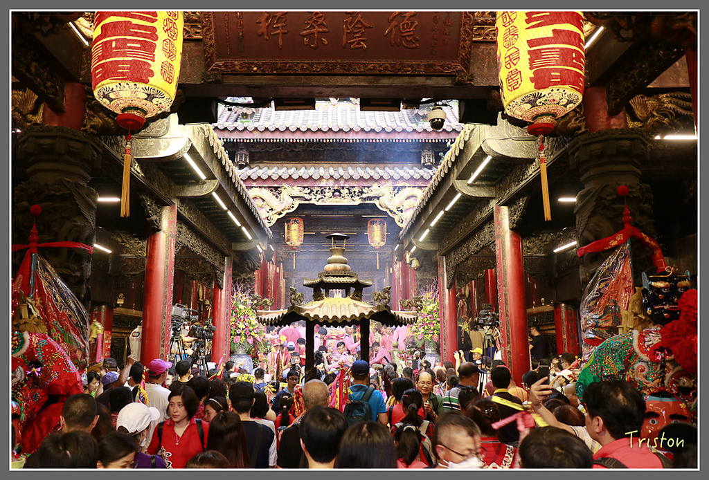 決定再到廟庭看一下熱鬧,因為到處都是人,也找不到可以坐下來的地方..還沒開走,腿就酸了,真不知如何是好...