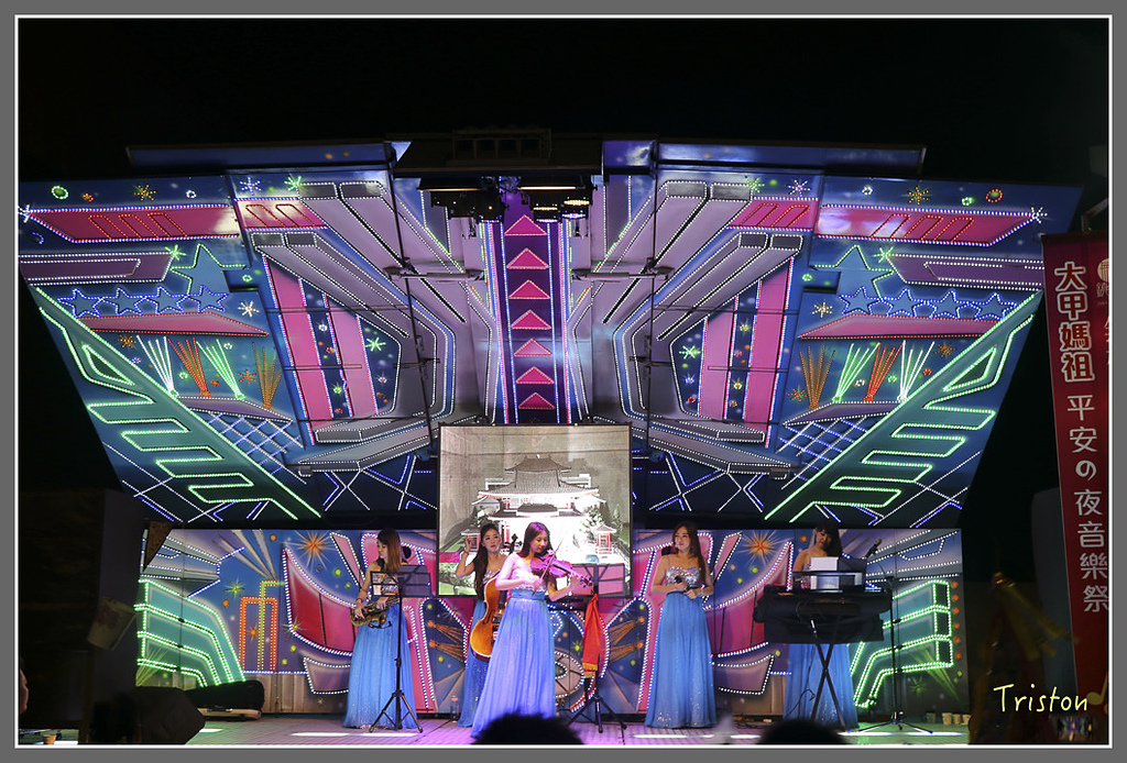這鎮安宫的表演很現代,半夜一點三十分,還有電子小提琴、大提琴的演奏...