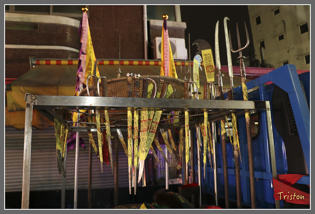 這時最好還是補充點糧食,路上有善心人會分包子、餅乾或粽子,也少不了瓶裝水,還是多少補充一些。在路上遇到虎爺車