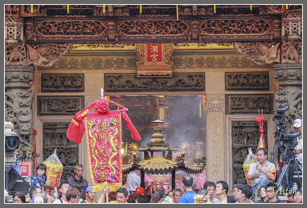 又回到廟前,連澳門天后宮也來會香,Macau當然也是天后宮的轄區,只是這新建的澳門天后宮可不是當然的澳門媽閣廟,澳門媽閣廟建於明朝弘治元年(AD.1488),比大甲鎮瀾宮的清雍正八年(AD.1730)還早二百五十年吔!不同一個量級
