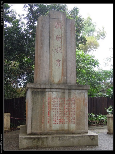 新苗競秀,石碑設立於民國49 年,我記得這裡以前有個維多利亞樂園,但好像已經在93年7月停止營業,而維多利亞樂園以前應該也是新威苗圃的一部份,很好奇是何方神聖有這麼大的本事可以把這國有財產弄到手,因為這裡原隸林務局,但民國八十四年轉編給六龜鄉公所,但維多利亞樂園停止營業後那一大片山林又賣給一貫道的天臺山,這次來發現裡面又在大動土木,砍樹伐木,大概又要蓋什麼聖堂道場吧!下次再有個八八風災來他們就離天堂不遠了.....