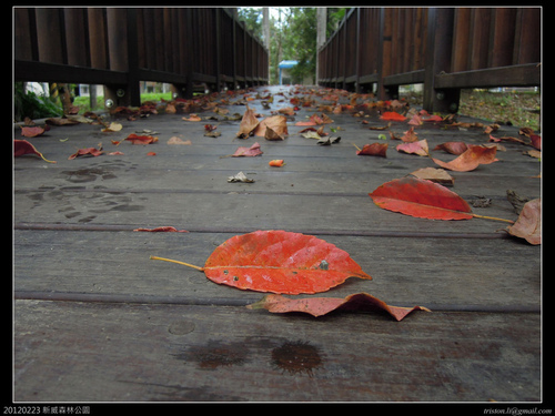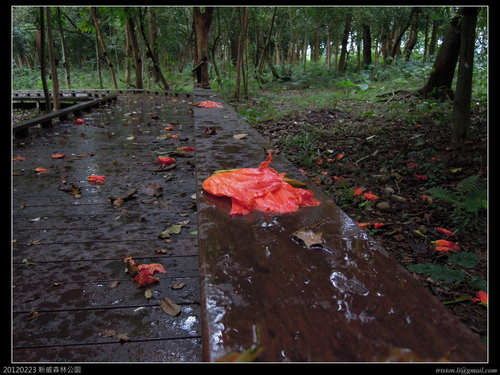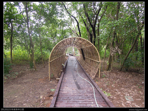 新威森林公園的兩側修建了木造步道,全長大約有1.5公里,這裡林木蔥籠,蠻適合來散步走走