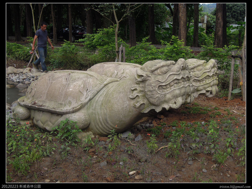 這兩隻石龜原本是在荖濃溪邊的六龜遊客中心的那幾隻..結果八八水災後被搶救出來,繼續在這裡執勤