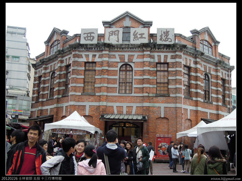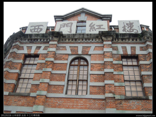 西門紅樓。這棟兩層高的三級古蹟紅磚洋樓為1908年所建,該古蹟建築最獨特之處在於外觀為每正立面8公尺。也因此,該建物於日治時期通常被稱為八角堂。