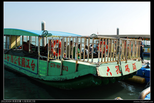 車子在七股的小道上左穿右鑽的,雖然誤差了一點點,到最後兒子終於沒找到他的"黑琵號",而我們選定了六孔碼頭的"台江一號"。