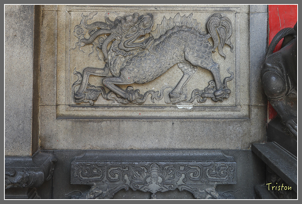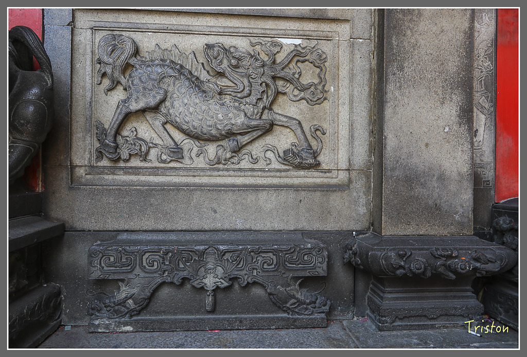 麒麟垛,以剔地起突的手法,將圖案雕出圓體,其餘的地全部凹入,突顯主題,也稱為浮雕。