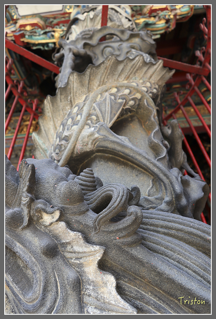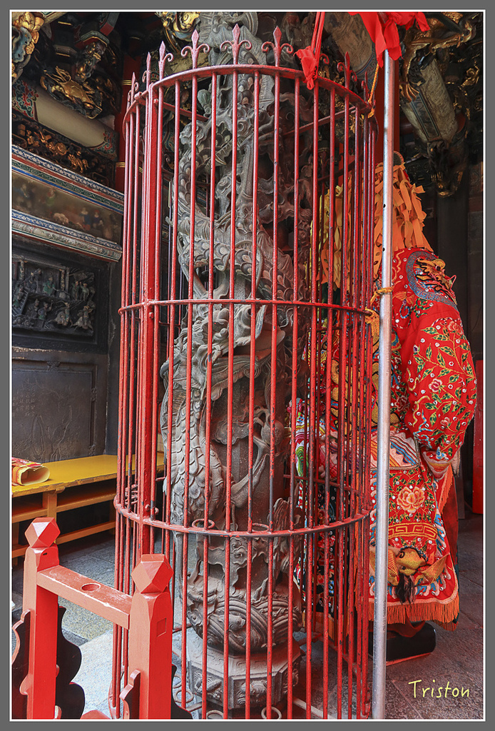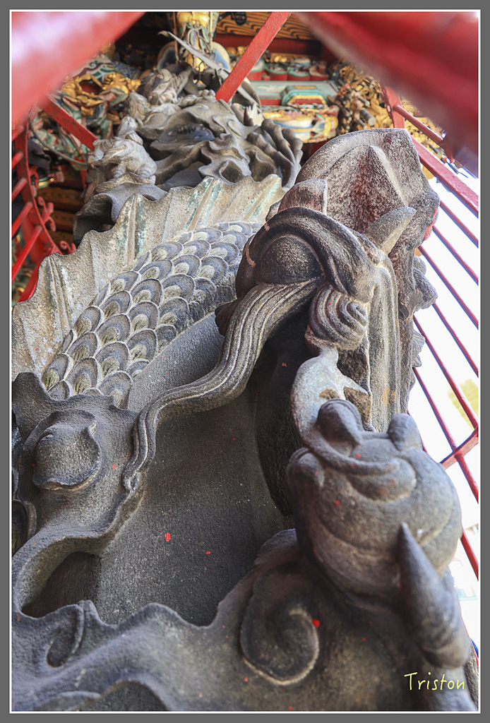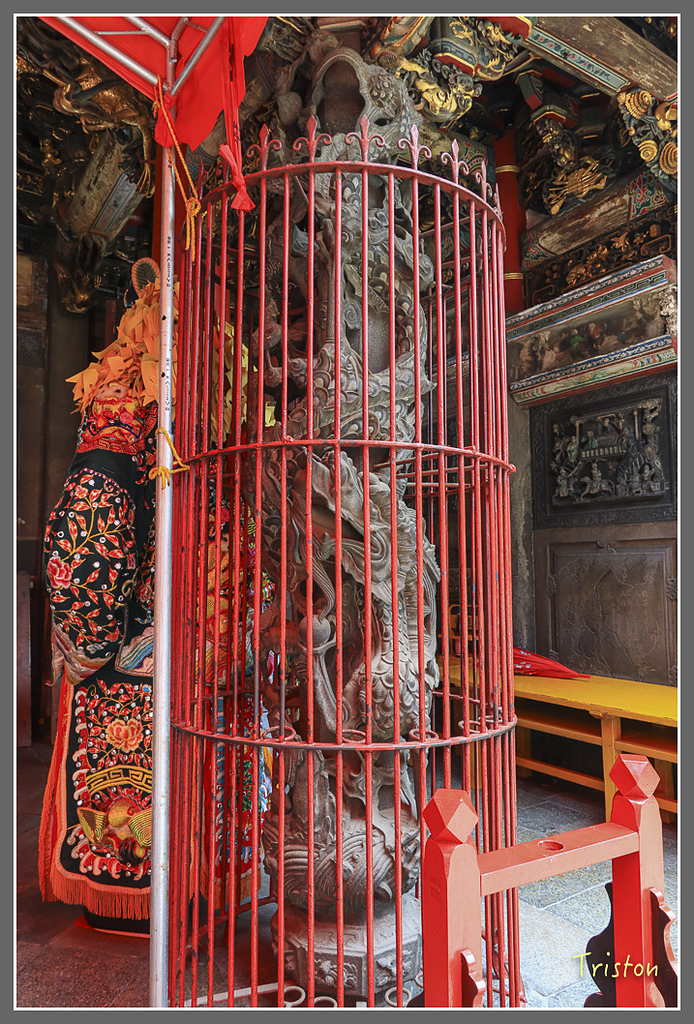 三川殿龍柱,可惜被鐵架擋住了