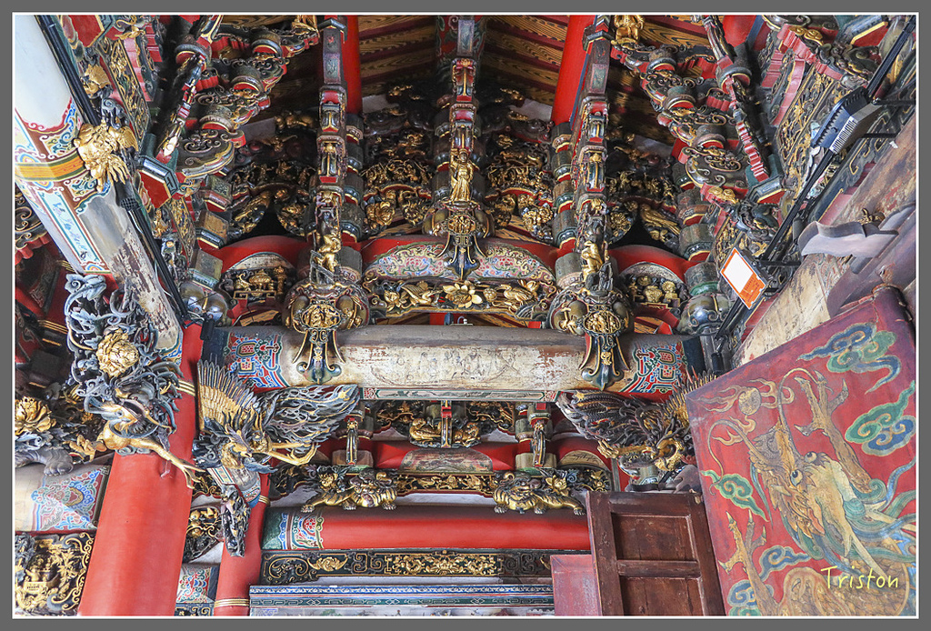 龍虎門出現長枝八角藻井,運用複雜而困難的木結構斗栱技巧,這藻井和鹿港天后宮、龍山寺者相比,又有不同的巧妙