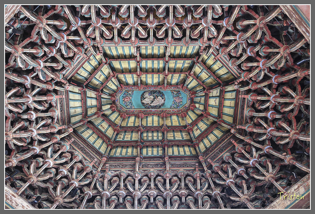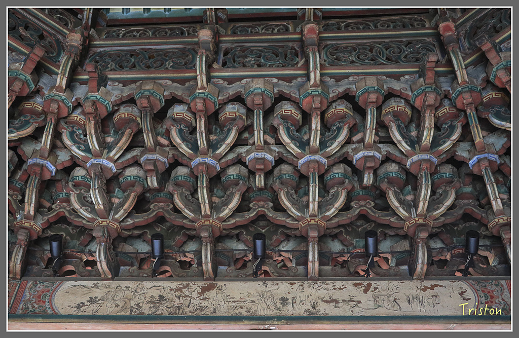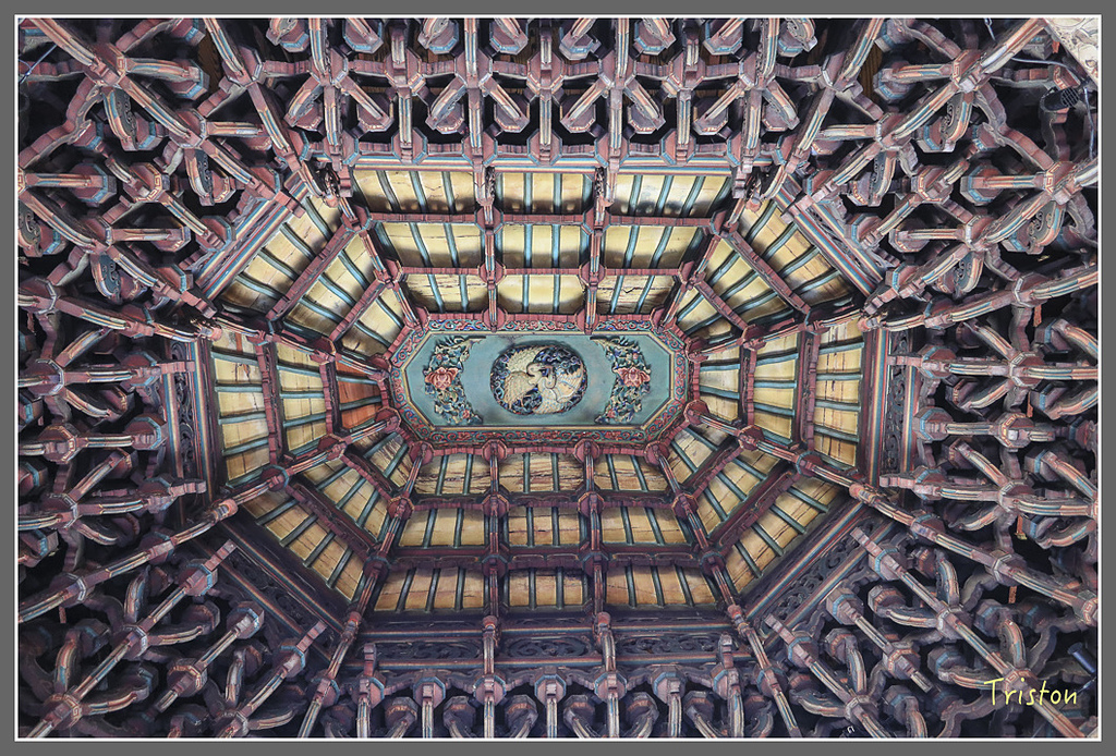 三川殿門內上的看架作斜拱,有八仙站立在拱頂上