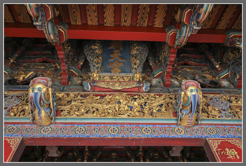 北港朝天宮三川殿木作是大匠師陳應彬傑作,陳應彬作品大多在台灣北部,在南部不多,還有關仔嶺大仙寺