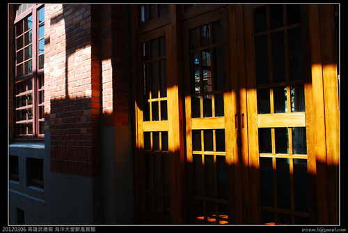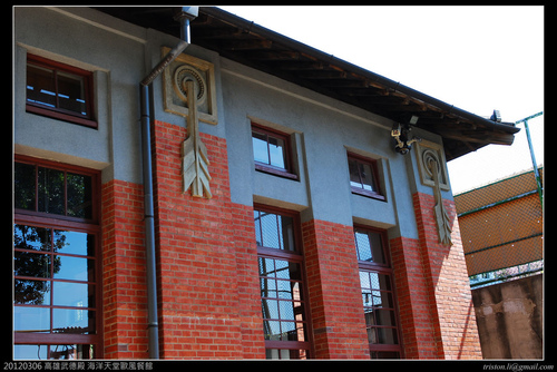 牆上具有日本元素風格的箭標,用一支箭和一支靶合體的圖形,其莊嚴的模樣用來顯現武士道的精神