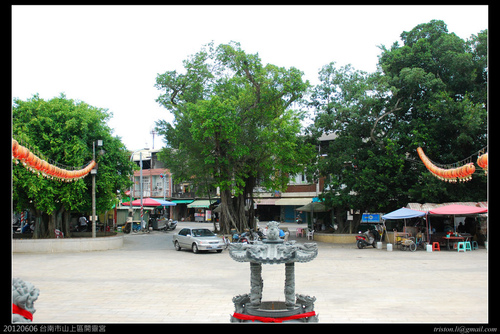 廟埕前有幾棵高大的榕樹,一如其它的廟口,樹下是小販和老人聚集吃茶聊天的場所!