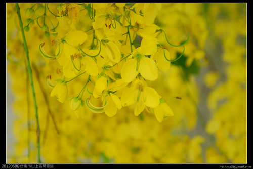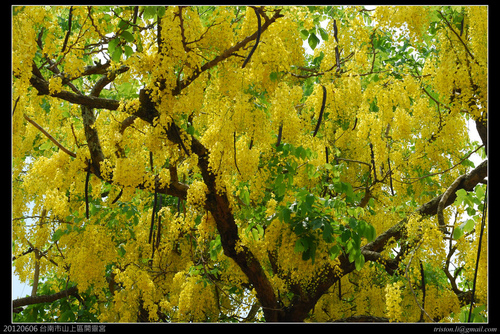 阿勃勒,稱雨蘭松,又稱倒吊蓮,即使是二百多年的老樹,生命力依舊旺盛,二三百年來,每到農曆五六月,一大片的金黃色燦爛花朵便恣意綻放。