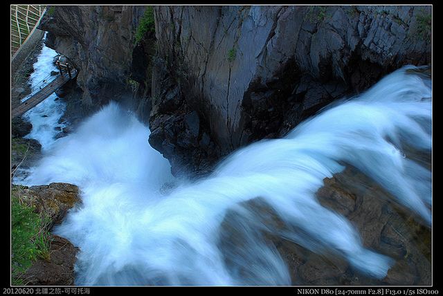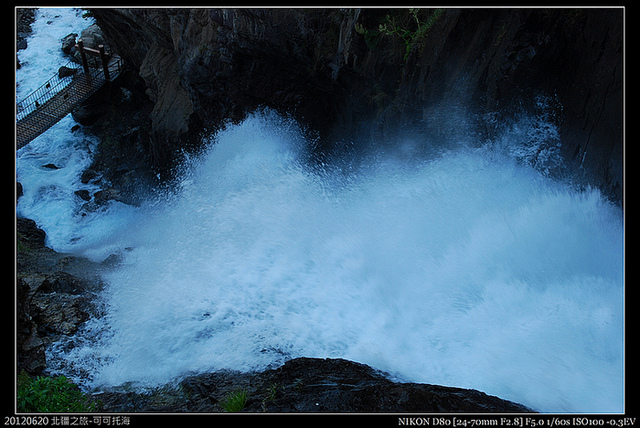 步道就在瀑布旁,巨大的水聲和飛濺的水氣,讓我們膽戰心驚,一方面又想親近一點拍照,但看這聲勢卻又有點膽怯地不敢靠近.