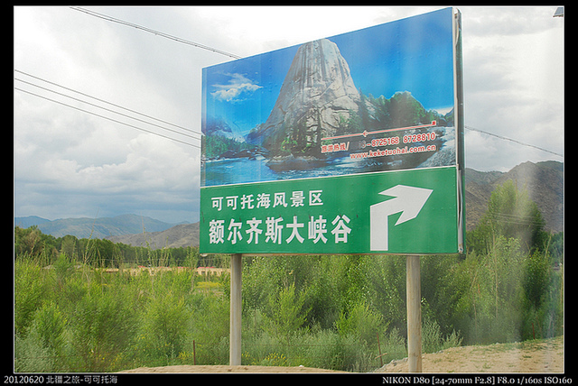 可可托海標誌,說是離停車場50多公里,其實不只,至少破百,還得翻過一道阿爾泰山支脈咧!
