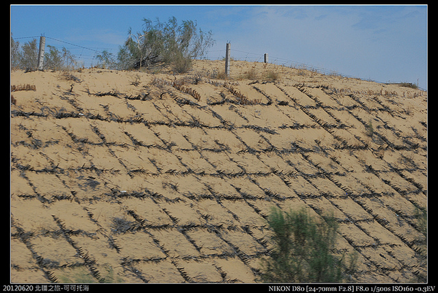 筆直的沙漠216國道,新疆由北到南依序有三座大山:阿爾泰山,天山,喀喇崑崙山;阿爾泰山和天山間是準噶爾盆地,天山和喀喇崑崙山則有塔里木盆地,這是我在國中地理課本讀到的。另外,又以天山將新疆分為南疆和北疆,其中北疆雨水較豐富;行車在經過準噶爾盆地的216國道,只覺遍目黃沙,真不曉得古人身處其中,何以曉得這是個”盆”!現今我用立體的衛星空照,才能理解啊!