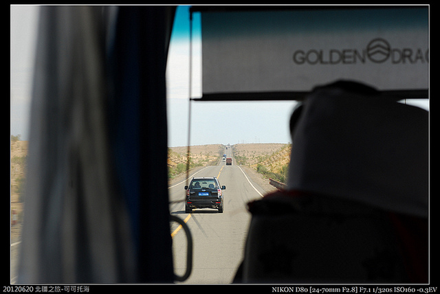上車囉!離開天山天池,進入216國道,開始500公里的長途奔馳,這實在是沒辦法的事,因為我們要由南而北跨越准噶爾盆地東緣的將軍戈壁,直奔可托可海,今晚要在可托可海露營