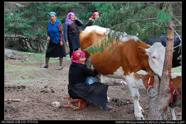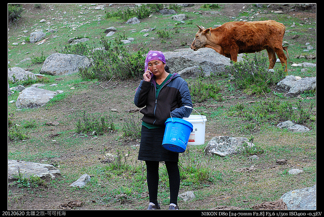 原本看到一名哈薩克婦女要去擠牛奶,正要跟拍,結果她信手拿起手機,就聊起來了...