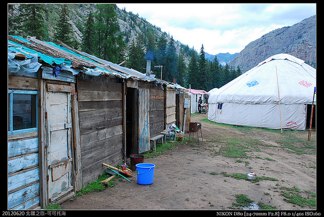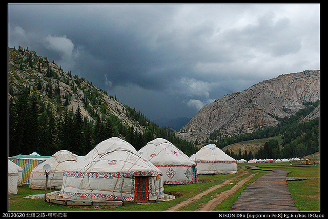 原本是要在額爾濟斯河畔露營,結果在氈房老闆娘的鼓吹和恐嚇山區的雨勢有大,我們一來怕冷,二來怕雨,又一個人補了八十人民幣,換了氈房!這裡的少數民族很會掙錢吧!!