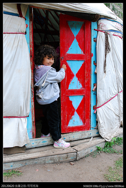 氈房老闆的女兒,不怕生的一直跑到我們的氈房玩,她看起來就像是歐亞混血的洋娃娃,可愛極了