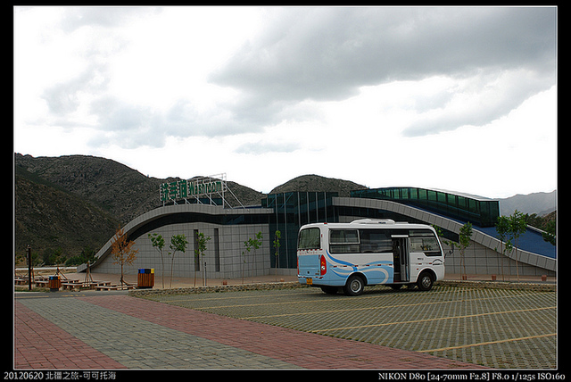 終於到達可可托海景區,又是大大的停車場,車子兩三輛,車子背景就是用二個人看管打掃的五星級廁所,便斗還會自動冒泡,說什麼生化分解,反正顯然就是錢太多,找不到名目貪污唄!