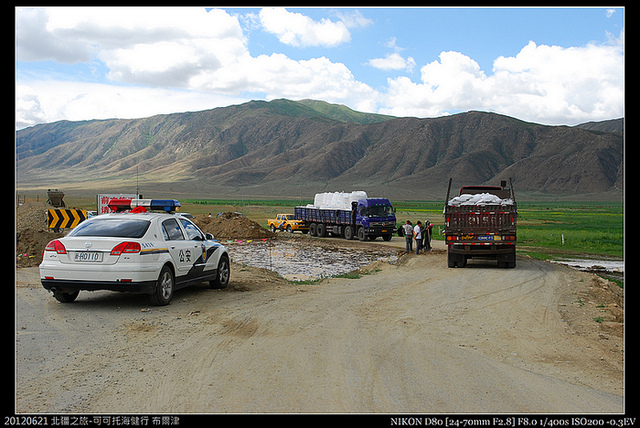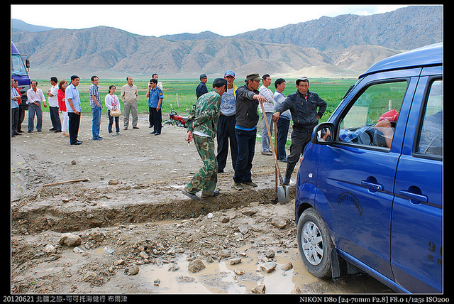 一開始,小車或四驅車硬闖或從泥沼地繞過,許多小車都過了,只剩下大車或客車不能過,車流一下減少一半,即使來了一隊公安和法院的車隊,全是四驅車,也自行走了,反正也不關他們的事吧!。可是上面還沒人來處理協調,導遊打電話去縣長辦公室,得到了美麗的答案:你的問題我們會儘速處理,請耐心等候。我們的師傅和大貨車師傅大概是串謀,乾脆把車再一橫,把小車可以走的路也擋了,反正要堵大家一起堵,事情鬧大了才有人管!