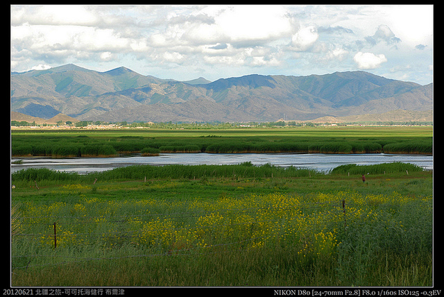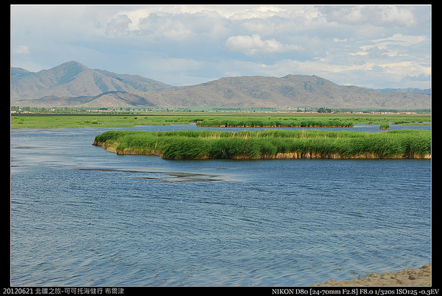 野鴨湖保護區,又叫可可蘇里湖,陽光灑落在對面的山麓上,水豐草美,四周水鳥和羊牛牧群都集聚在這裡繁衍生息